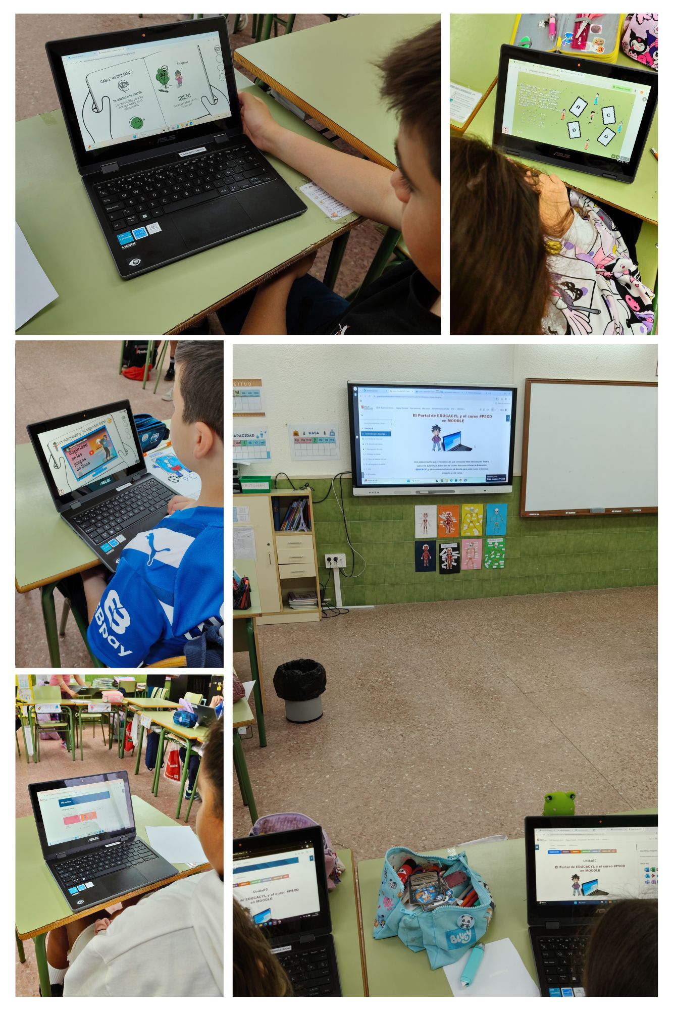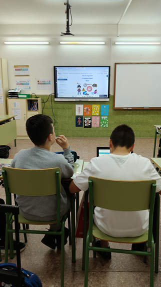 Las imágenes muestran alumnos de 3º ciclo realizando las actividades del Aula Moodle “Plan de Seguridad y Confianza Digital”.