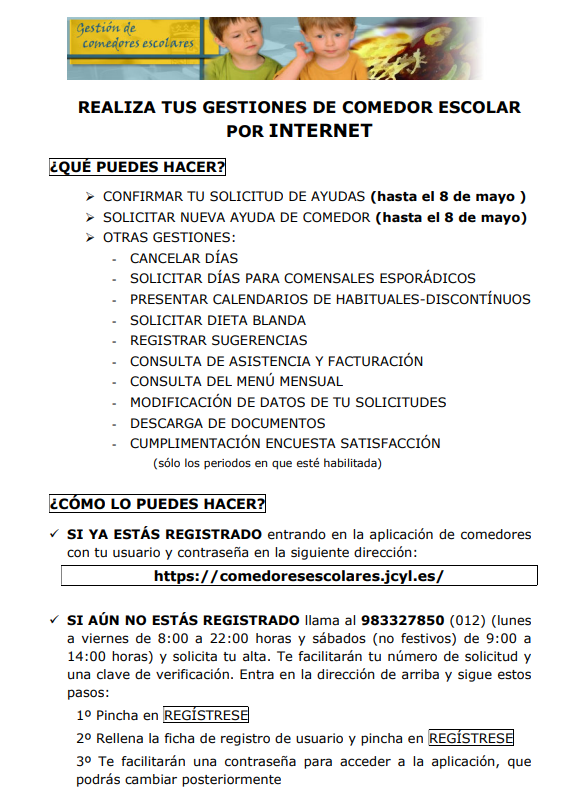Información sobre la tramitación de ayudas a comedor 2026/2027.